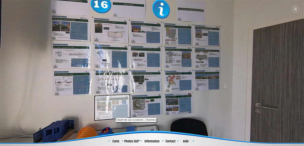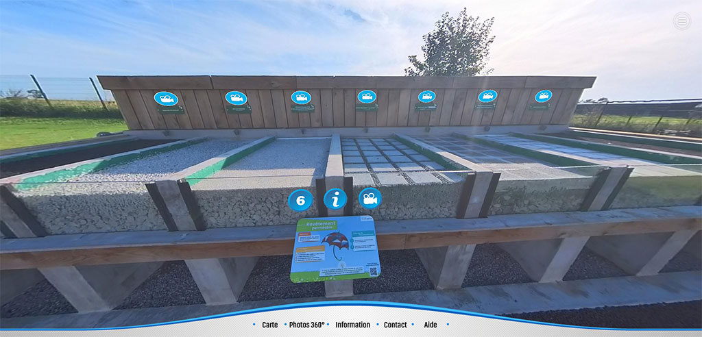 Découvrez l’Espace Pédagogique des Eaux Pluviales de Chauny Tergnier La Fère grâce à cette visite virtuelle 360°. Plongez dans un monde interactif où vous pouvez cliquer sur des panneaux pour lancer des vidéos et ouvrir des documents informatifs. C’est une expérience immersive qui vous offre une compréhension approfondie des installations et de leur importance.