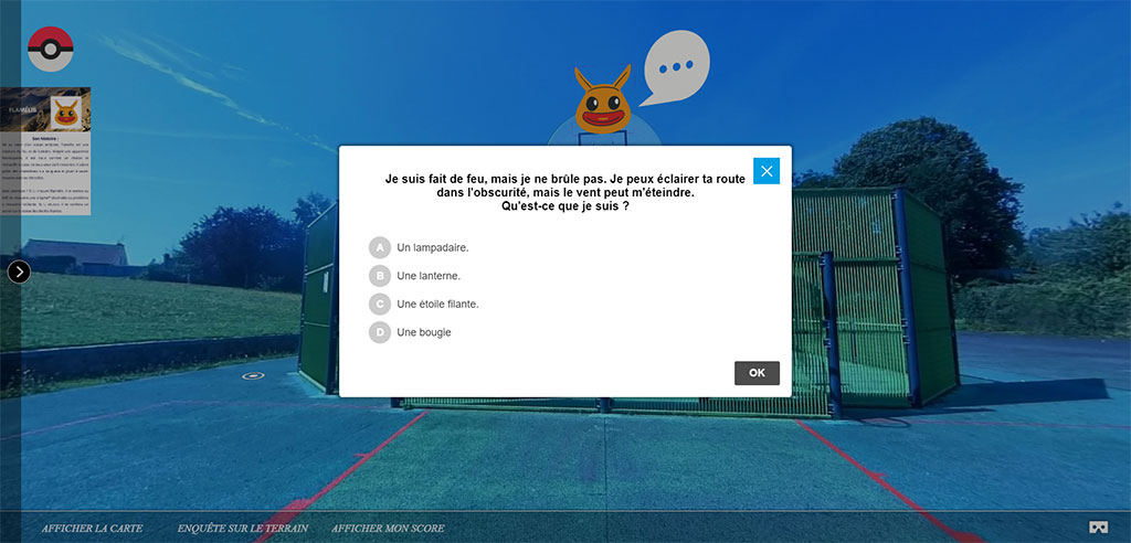 Enrichissez l'apprentissage avec la visite 360°, intégrant des fiches explicatives et des documents pour les musées, écoles et institutions culturelles. En plus, proposez des QCM interactifs pour valider les connaissances ou intégrez des jeux éducatifs, comme la recherche de dangers sur une photo pour des programmes de prévention. Ces fonctionnalités rendent chaque visite non seulement instructive, mais aussi captivante et ludique